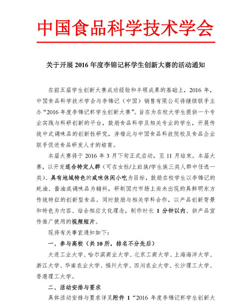 2016年度李錦記杯學生創新大賽
